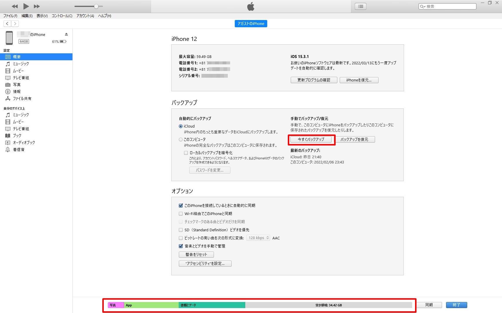 iTunesを使ってiPhoneのデータをバックアップする
