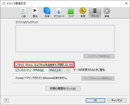 自動で同期されるとデータが消える可能性があるので、USBケーブルをつなぐ前に自動同期をOFFにします。