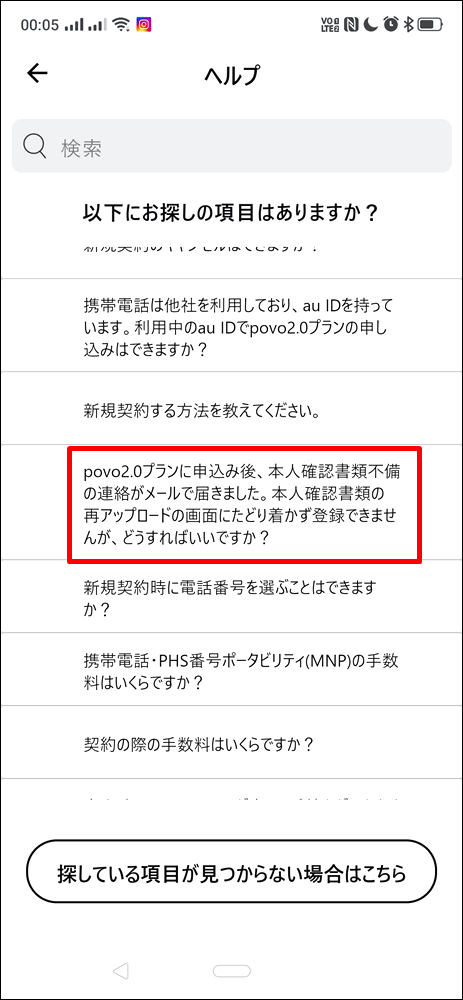 そこでpovoのアプリにあるチャットで相談してみることにしました。